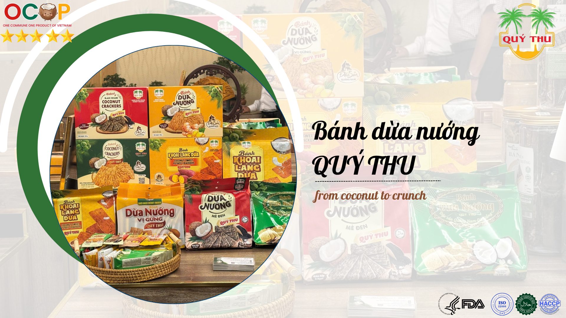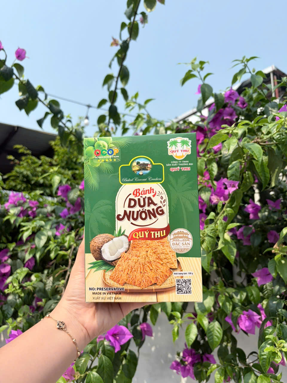 Được sản xuất trên dây chuyền hiện đại ,quản lý chất lượng ,an toàn vệ sinh thực phẩm theo tiêu chuẩn HACCP 5603-2008. Những chiếc bánh có màu nâu vàng thơm lừng tự nhiên đã chiếm được lòng người tiêu dùng ,khách du lịch và trong và ngoài nước khi đi du lịch ở VIỆT NAM. BÁNH DỪA NƯỚNG QUÝ THU đã được ỦY BAN NHÂN DÂN tỉnh QUẢNG NAM cấp chứng nhận OCOP 4 sao năm 2021 ,chứng nhận sản phẩm công nghiệp nông thôn tiêu biểu cấp tỉnh năm 2020. Bánh dừa nướng QUÝ THU hiện nay đã có mặt trên thị trường của mọi miền nước VIỆT NAM và chúng tôi đang hướng đến xuất khẩu. Bánh dừa nướng Quý Thu đươc quý khách tin yêu ,ủng hộ là niềm tự hào và may mắn đến với chúng tôi.… Xem thêm…
